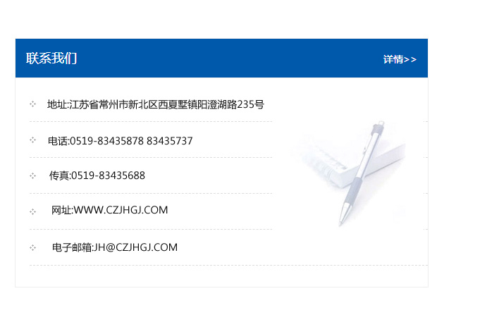 傳真:0519-83435688    郵編:213135    網址:WWW.czjhgj_com.hfzmei.com    電子郵箱:JH@czjhgj_com.hfzmei.com